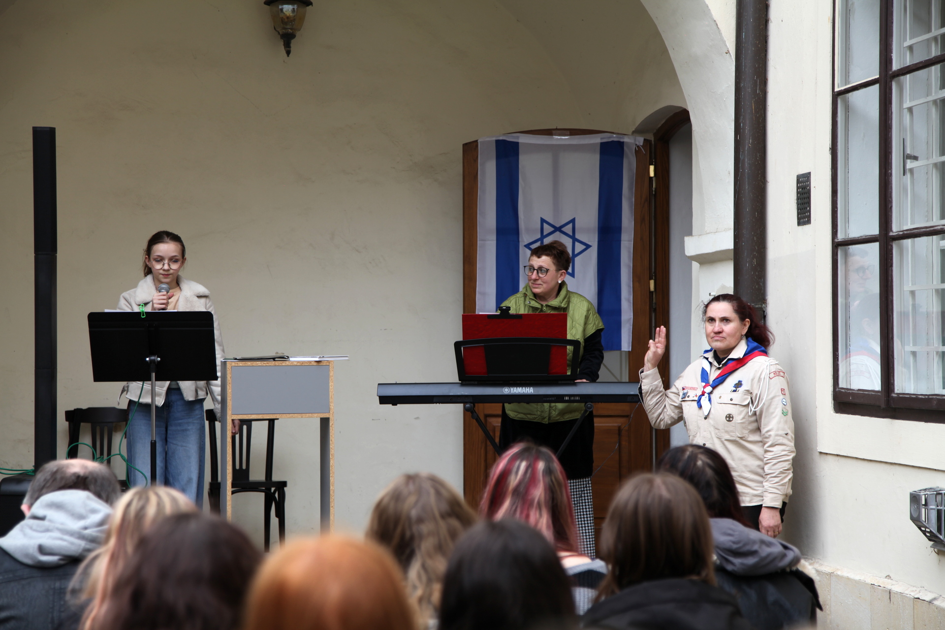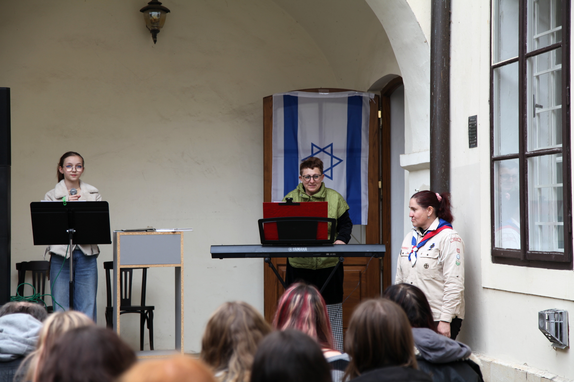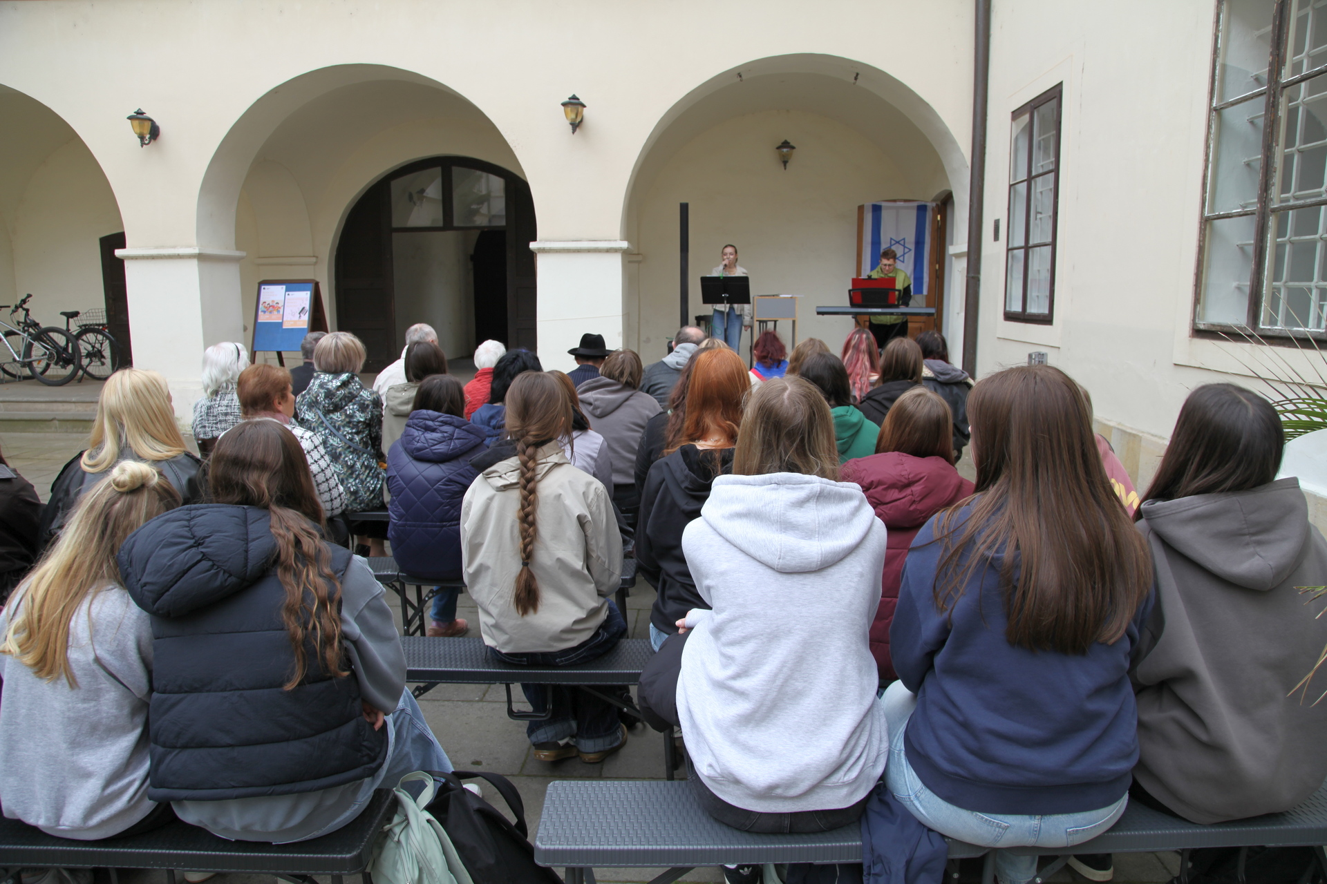 Samotný začátek čtení slavnostně zahájila žákyně ZUŠ Julie Bláhová, která přednesla tři židovské tradicionály: Sisu ve-simchu (Veselte se a radujte se), Ha-tikva (Naděje) a Hava nagila (Radujme se). Její vystoupení vytvořilo silný a citlivý úvod k setkání, jehož smyslem je nezapomínat.