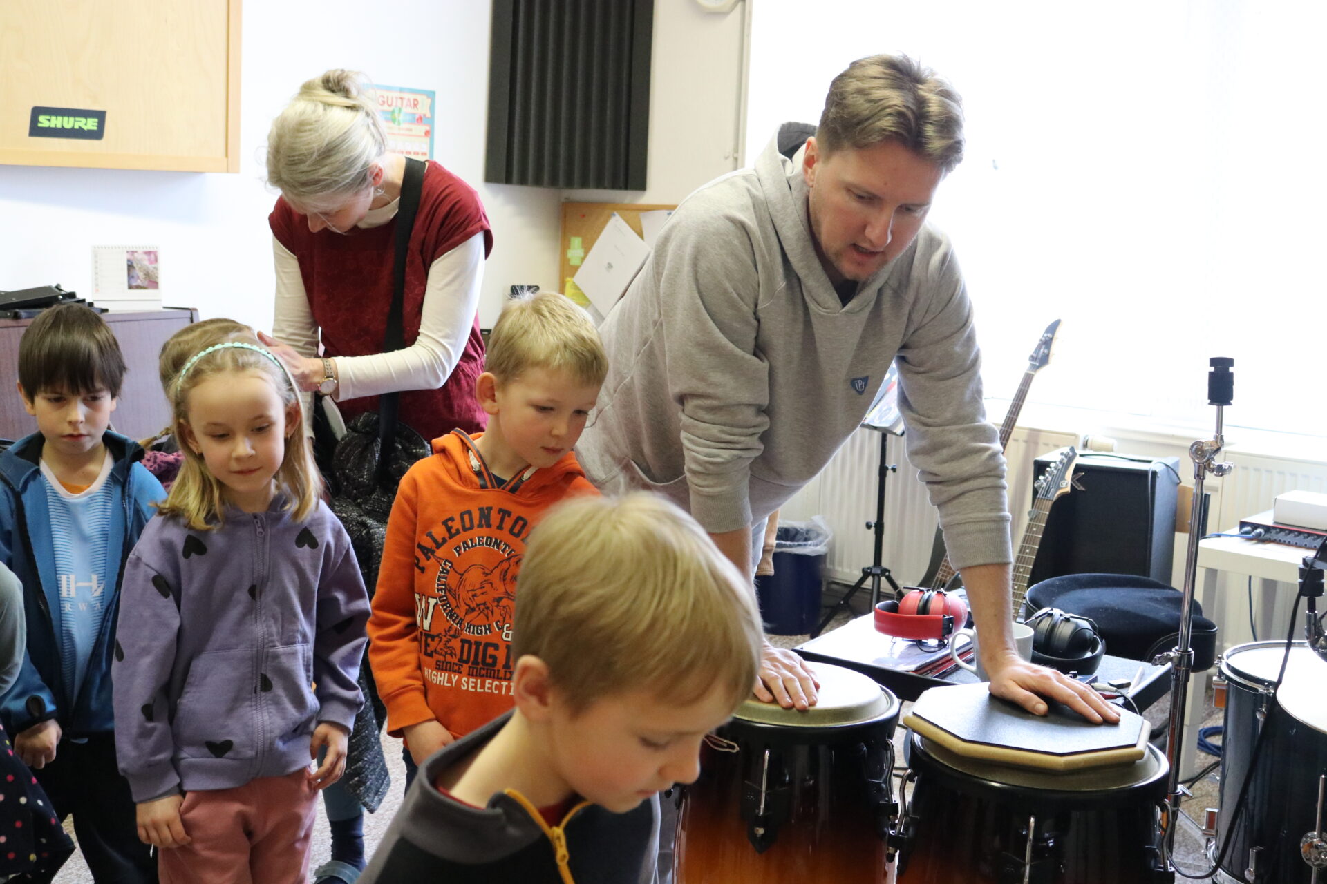Rytmickou energii přinesla třída bicích nástrojů, kde se děti seznámily s rozmanitostí rytmických možností a samy objevovaly, že hudba vzniká nejen pomocí paliček, ale i dotykem rukou.